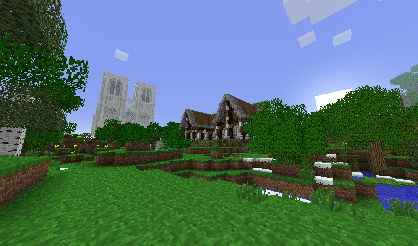 Особняк игрока Just_Steve в поселении Дальний, на заднем плане Нотр-Дам-де-Пари